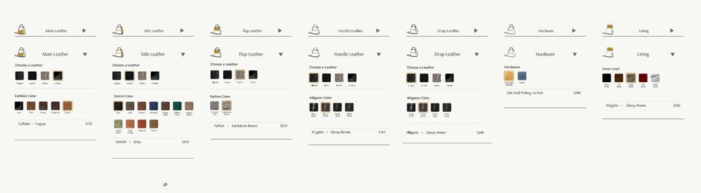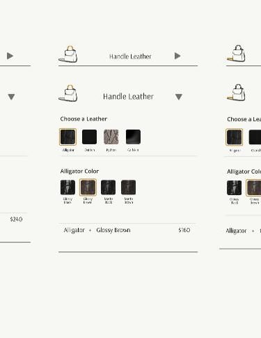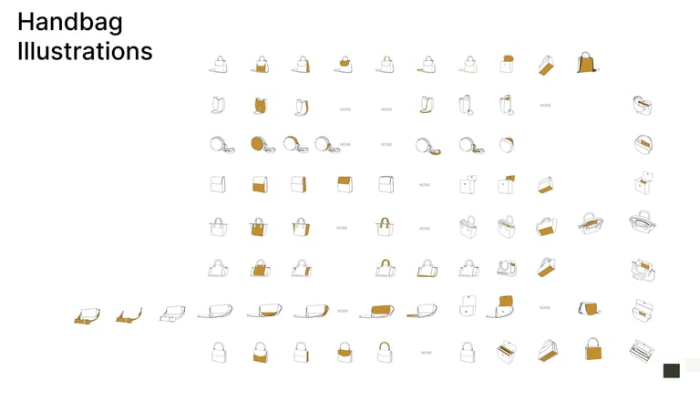 I worked with another designer who helped create the illustrations that would represent the handbag designs. These were used to simplify navigation for users.