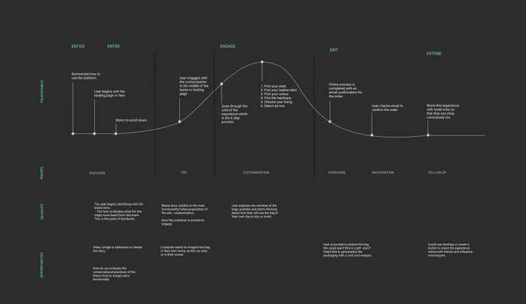 Engagement with the business began with a logo design contest, after which the client intended to build an e-commerce website for a luxury handbag brand. The contest gave me ample background information going into the user research and interface design. My team and I took on various aspects of the website, conducting research to gain an in-depth understanding of the clients' ideal and potential customers.